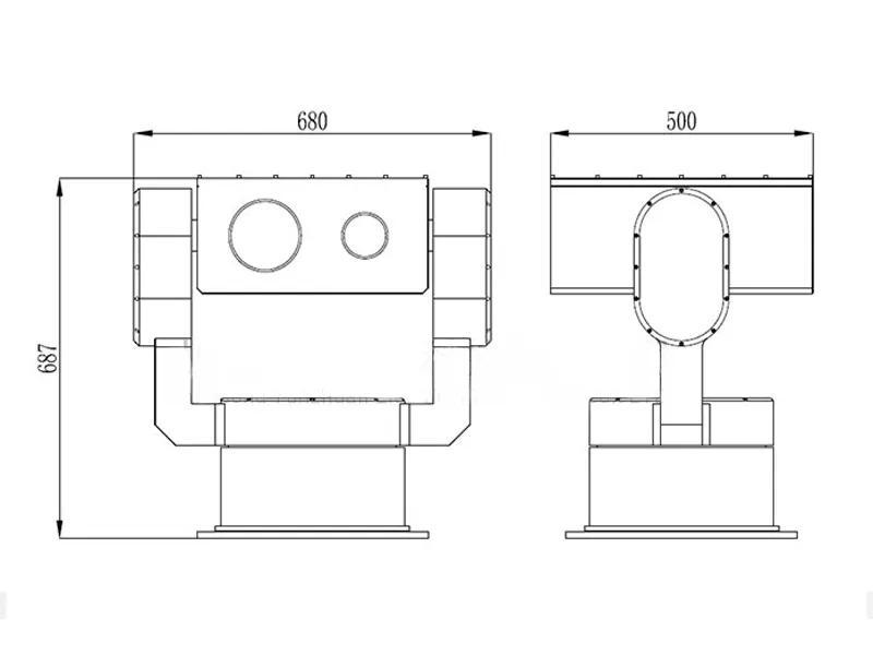 The YZ-BZ680ZD is developed for outdoor deployment where dual-axis motion control, high positioning precision, and stable support structure are required. Its gear drive supports reliable high-speed horizontal and pitch rotation, while the support-type mechanical design makes it suitable for integrated systems carrying medium-load equipment, lenses, and auxiliary devices. It also supports serial communication control, optional lens protocol integration, independently adjustable lens and pan tilt speeds, and multiple communication interfaces for customized engineering applications.