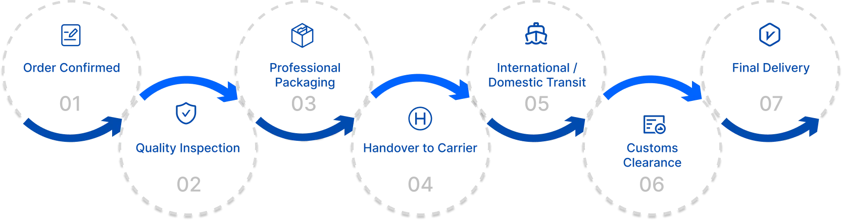 We work with trusted freight forwarders to offer both air and sea freight, managing all export documentation and customs coordination for smooth door-to-door delivery worldwide.